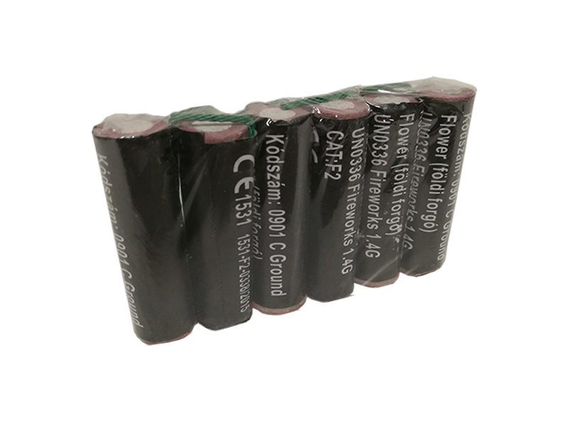 Sík terepre letéve a zöld gyújtózsinórt meggyújtva bepörög a földön és suhogó színes földi fényjátékot ad.